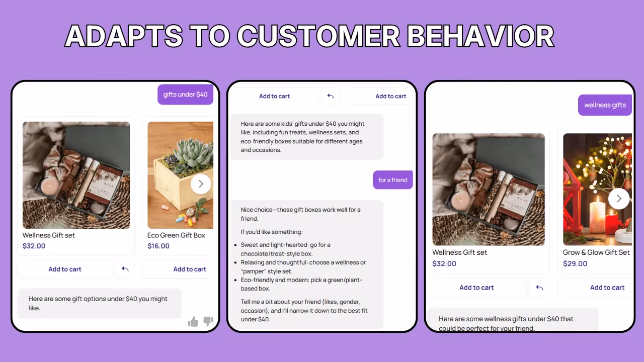 For example, when your customer types “gifts under $18,” they get relevant suggestions within seconds, even if it doesn’t match the exact keyword.