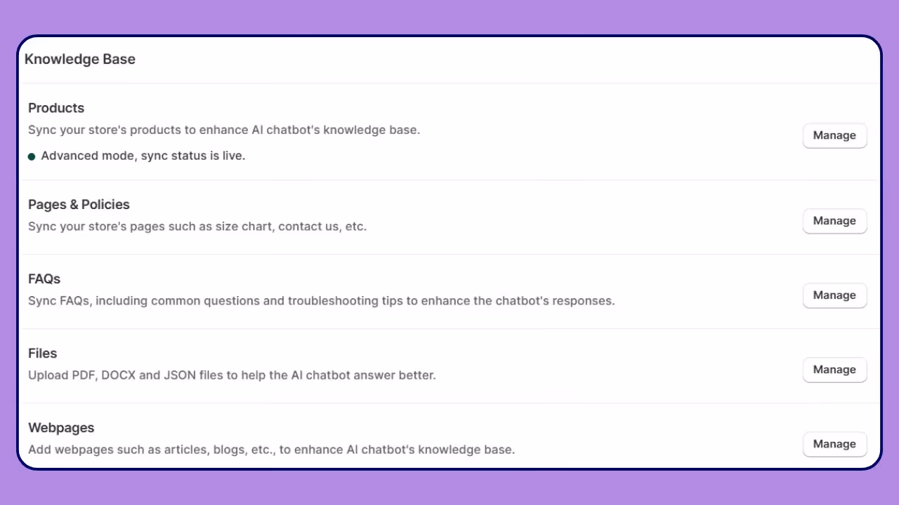 Make sure your products are properly synced. This helps the chatbot show the right products and not miss anything.