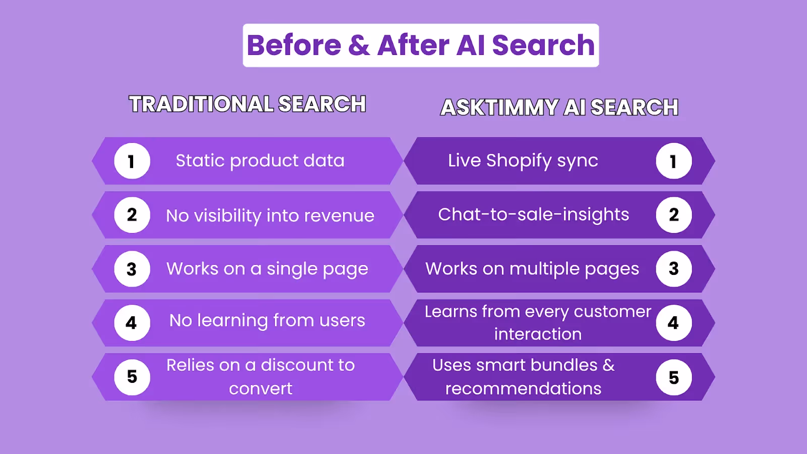 AI search does both. It helps customers find products, suggest items, and increase conversions, not just addressing the question.